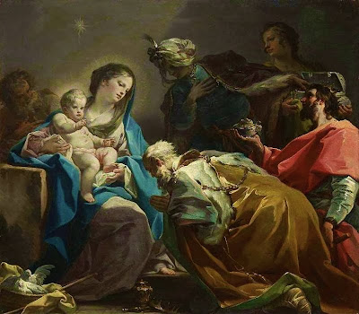 | 東方三博士獻上黃金、乳香、沒藥給耶穌母子 |
